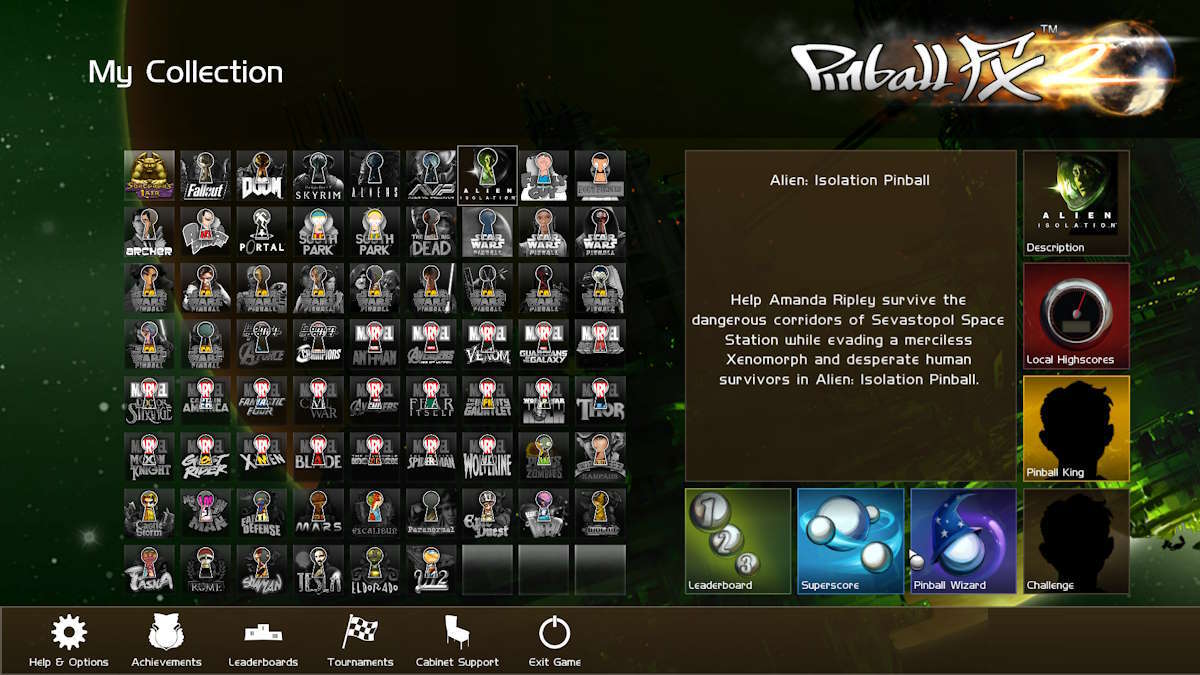 Ранний аналог Pinball FX, с большим числом столов по комиксам, мультсериалам и играм. Отличается консольным, Xbox-подобным интерфейсом. На данный момент в России недоступен и это очень печально, поскольку многие столы в нем уникальные. На мой взгляд, примечателен столами по играм Doom, Fallout и Alien: Isolation. FX3 является улучшенной версией.