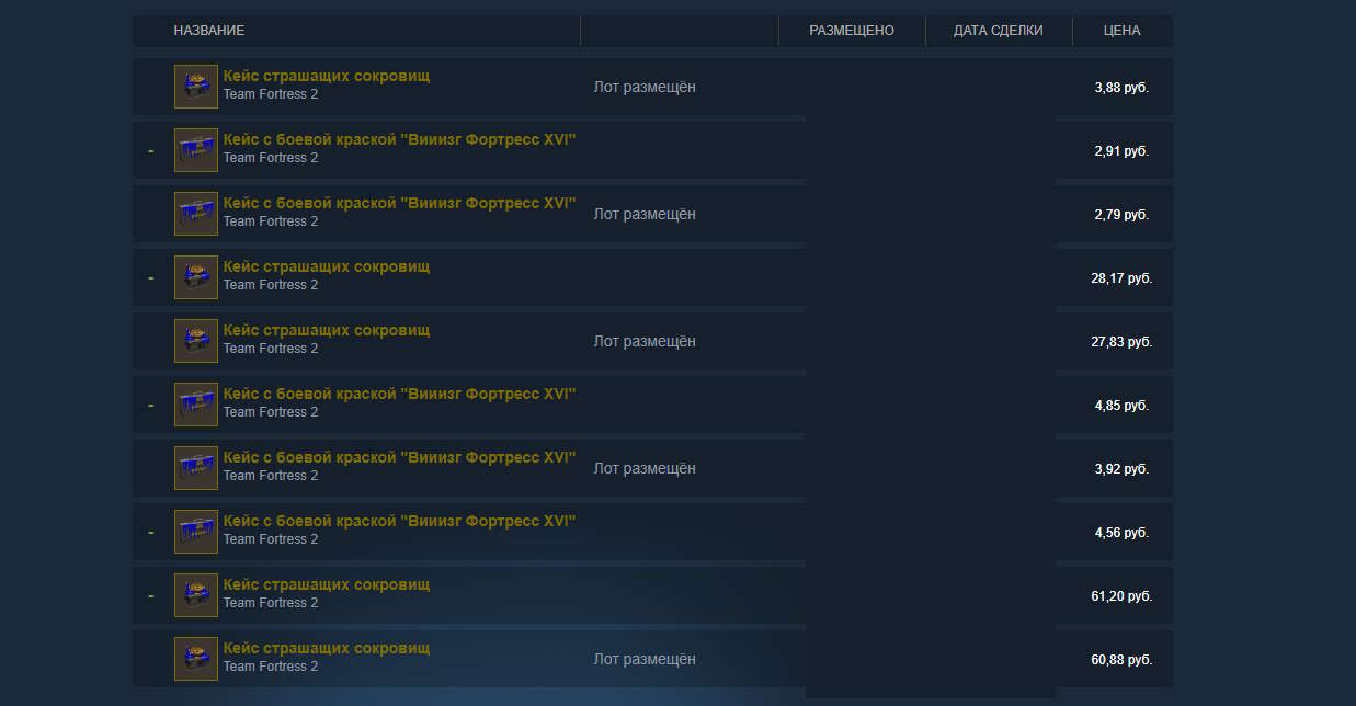 Подчеркиваю - новых. Средний кейс в Team Fortress 2 “живет” от двух до восьми часов, после чего его цена падает на 95%, и он уже не приносит прибыли. Всего в Team Fortress 2 три кейса в году. Зимний кейс, летний кейс и хэллоуинский кейс. У кейсов есть дублеры - кейсы с красками. Они куда более дешевые, но в первые часы тоже имеют хорошую цену.