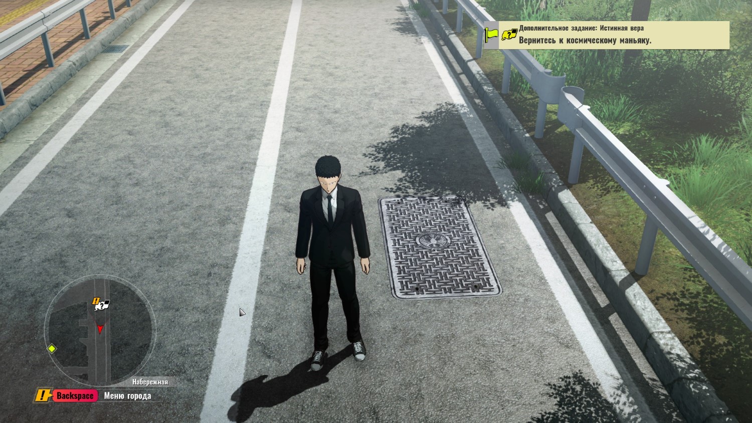 Главная проблема игры заключалась в её отвратительной реализации, явно имеющей консольные корни. В игре был небольшой и красивый городок. Он напоминал города из Yakuza и Persona, но им нельзя было нормально полюбоваться. По какой-то странной причине, поведение камеры в игре было строго ограничено и не позволяло смотреть на здания, поворачиваться на 360 градусов и делать вещи, нормальные для любой игры открытом мире. Это порядком раздражало, ведь город был не просто декорацией - по нему были раскиданы задания и квесты. А здания были украшены плакатами, хотелось рассмотреть все таблички и надписи. Над ними явно работали. Даже канализационные люки имели логотип “Ассоциации героев”. Но ужасная камера мешала все это рассмотреть.