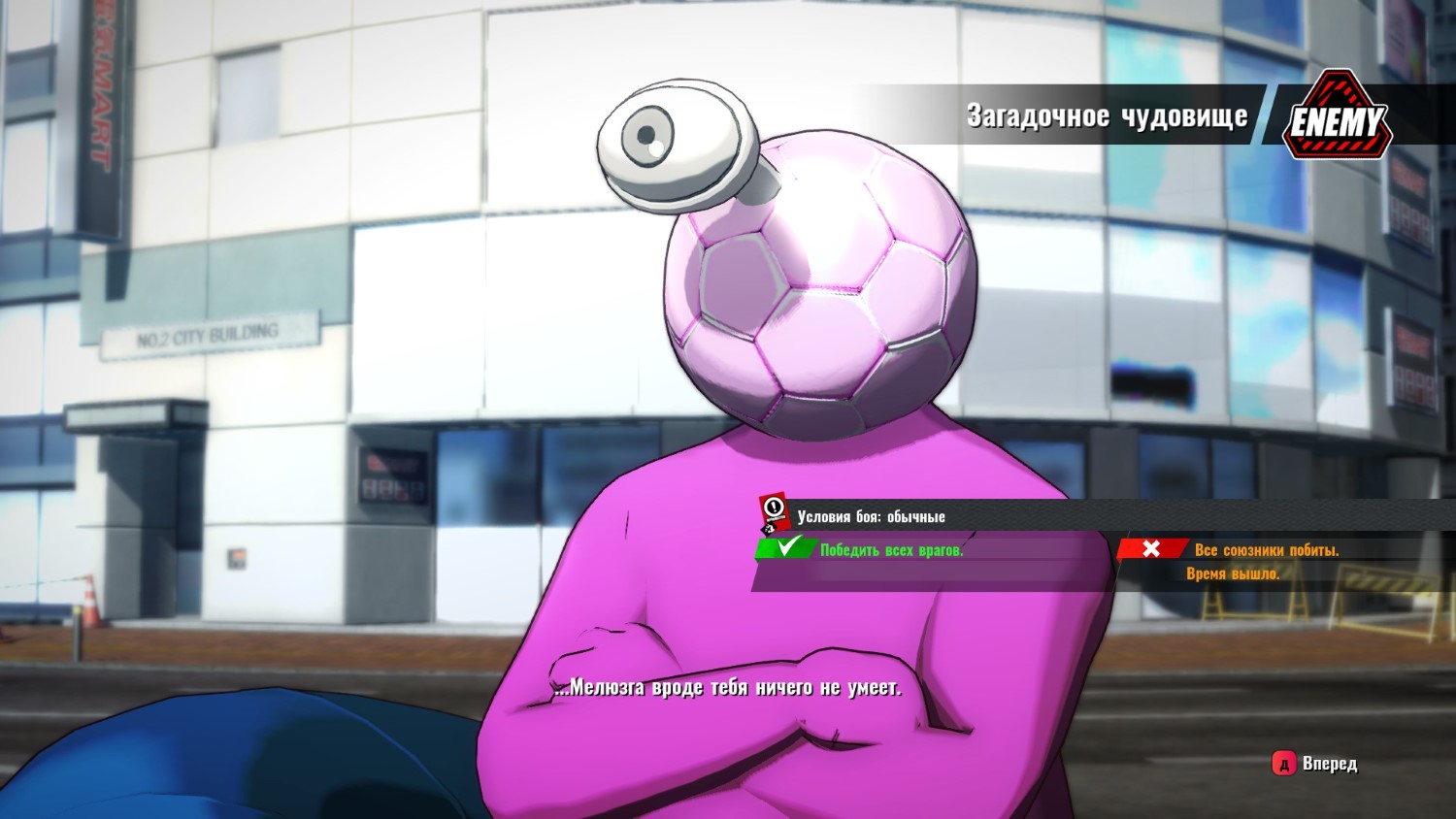Зато пришел какой-то розовый монстр. Он сказал, что наш танец приветствия его оскорбляет и сейчас он нас уроет. Мне, как герою, пришлось защитить старого любителя инопланетян и навалять чудовищу. Полагаю, он не прошел кастинг в Fall Guys и поэтому стал злым.