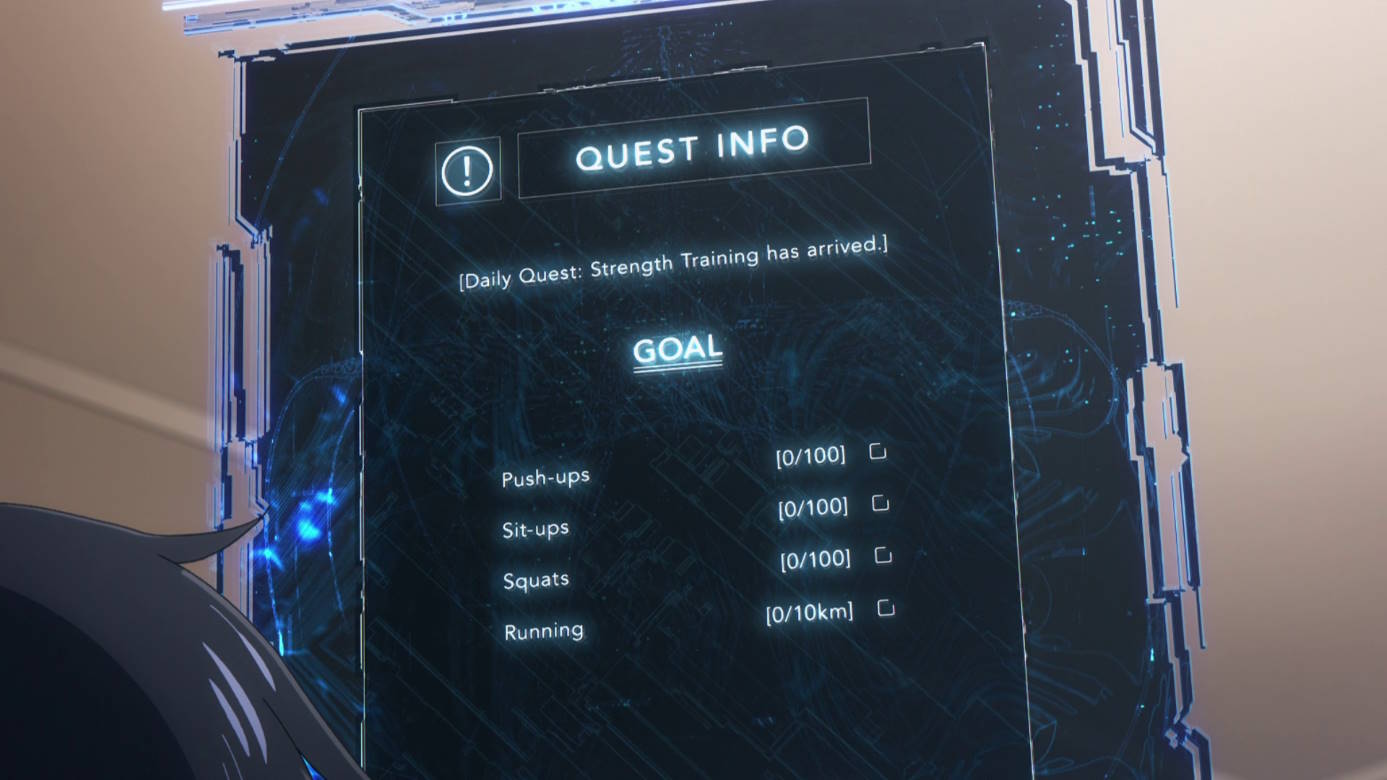 К примеру, во многих игровых аниме есть интерфейсы, похожие на те, что можно увидеть в играх. Но в большинстве аниме они обращены к персонажам. В Solo leveling их сознательно разворачивают к зрителю так, чтобы появилось впечатление, будто он прокачивается сам. Они очень лаконичны и просты. Это решение делает аниме ещё увлекательнее. Стоит признать, что пришло оно в аниме из вебтюнов, но умение правильно передать эту идею в аниме достойно внимания.