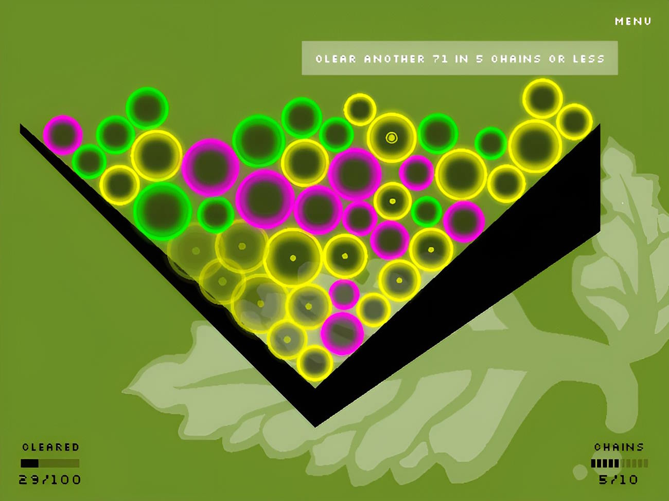 Безумно обидно, что такая самобытная и оригинальная игра, как Chains не нашла среди игроков должной оценки. Chains это антистресс-казуалка в жанре три-в-ряд. Не последнюю роль в ней играла физика и общее ощущение предметов. Шарики были будто из каучука, ими наполняли различные формы и предлагали игроку искать совпадения. Если игрок не успевал — форма могла сломаться.