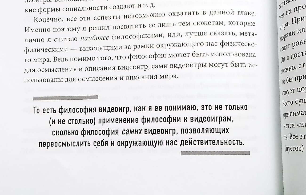 Финальной главой книги является “Метафизика видеоигр”, в которой исследуется тема философского подхода к видеоиграм и философия видеоигр как самостоятельное явление. И на мой взгляд, эта глав алучше всего демонстрирует, насколько игры является уникальным явлением и сложной темой.