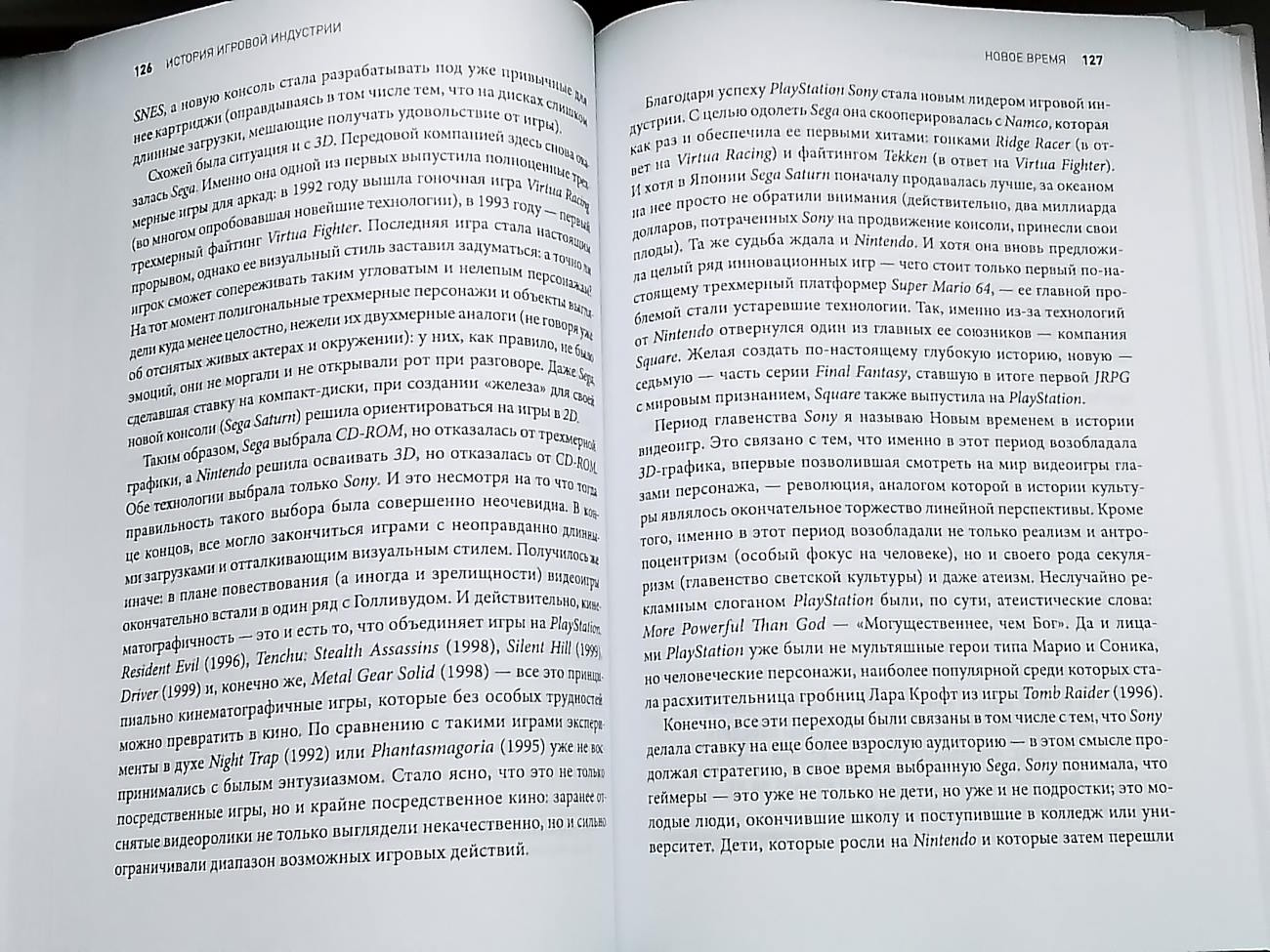 Фанатам компании Sony будет интересная глава “Новое время”, в которой речь идет о влиянии CD-ROM на игры, первых неудачах с дисками и роли, которую 3D-графика и диски сыграли в становлении PlayStation. Также глава затрагивает тему компьютеров, на которых царила анархия и не было никаких корпоративных правил. Это повлияло на появление авторского гейминга, то есть игр, где ключевую роль в создании играл какое-то разработчик с особым видением игры. Также компьютеры имели свою собственную, уникальную систему распространения игр. Это большая и интересная глава. Заканчивается эта часть прошлым десятилетием и игровой индустрии в России.
