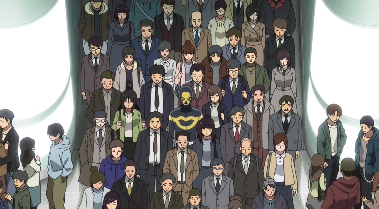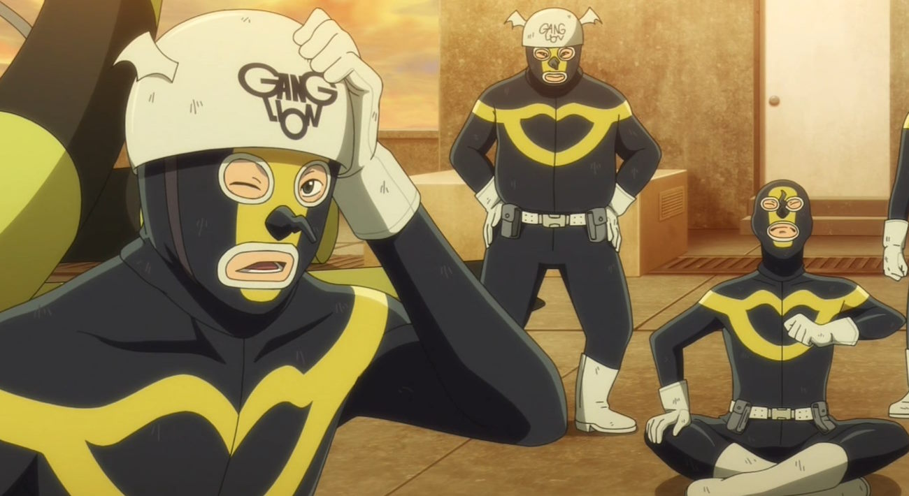 В Ganglion жизнь рядового злодея мало отличима от жизни обычных людей«Ганглион» — это короткометражное аниме, каждая серия длится лишь три минуты. С одной стороны, это мешает раскрыть главного героя по имени Исобэ, который каждый день в костюме осы вынужден шататься по городу. С другой, это аниме не может надоесть.