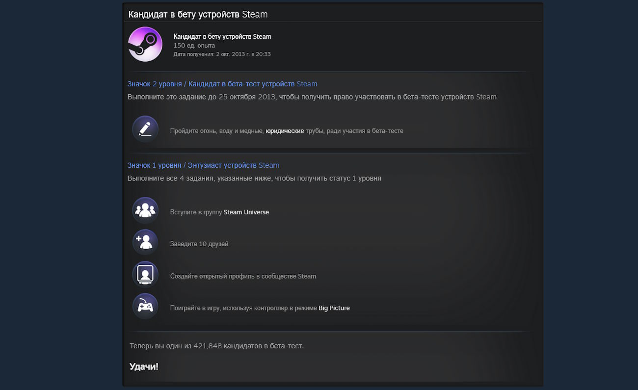 Тот период подарил нам потрясающие рекламные ролики, памятный значок в профиль Steam, новую операционную систему для геймеров на основе Linux, потрясающий геймпад от Valve и целую кучу несмешных обзоров, в которых блогеры смеялись над Steam Machine. Да, игрокам Steam Machine были не нужны. И Valve сделала ряд ошибок, пытаясь эти устройства продвигать. Даже тот самый памятный значок наивысшего уровня давали лишь тем, у кого был контроллер. Что, конечно, очень «порадовало» игроков, что любили Steam и играли только на клавиатуре с мышкой.