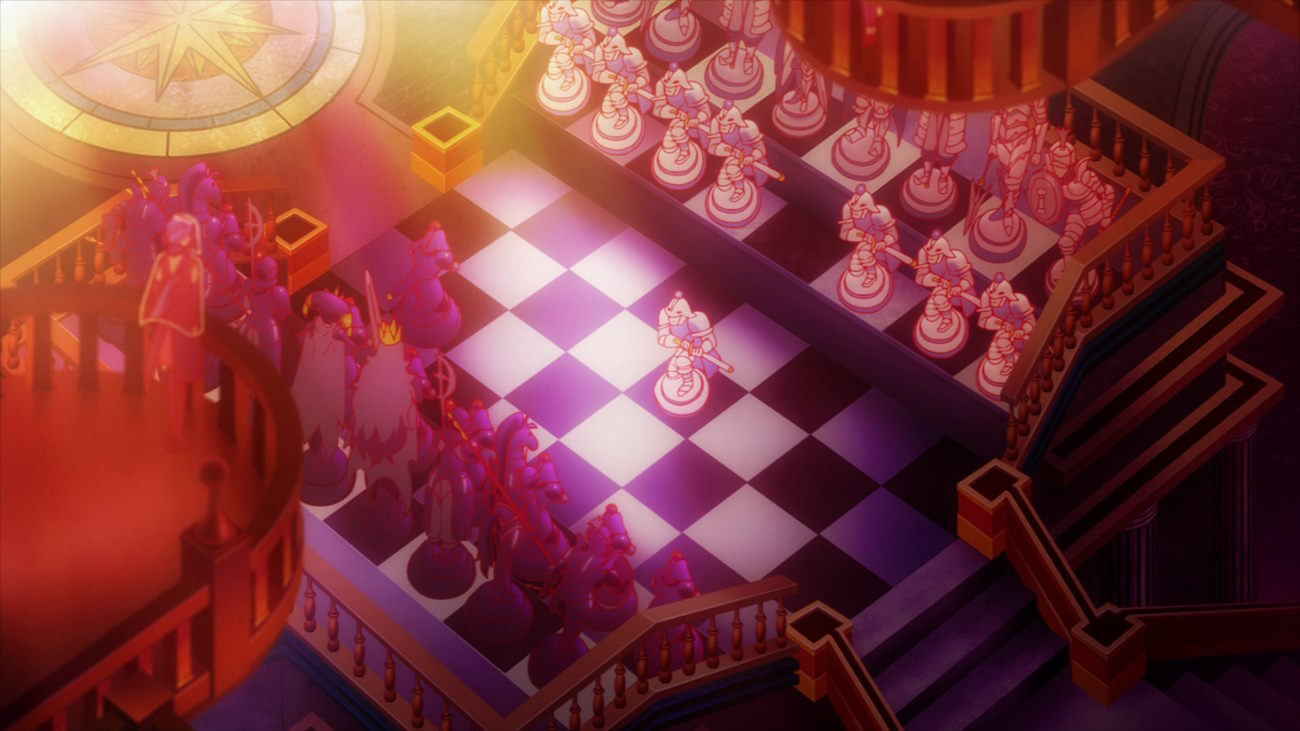 Кадр аниме No Game No Life, 2014 год, студия Madhouse, режиссер Ацуко ИсидзукаБлагодаря этому аниме многие геймеры с удивлением узнавали, что игры — не какая-то случайная цепочка событий, где победитель выбирается удачей. В них есть стратегия и тактика. И часто победе предшествует расчет и длительная подготовка. Хороший игрок — это не только натренированный аим, удобная раскладка и молниеносные реакции. Это ещё и умение думать, предугадывать действия соперника и применять свои расчеты на практике. Если копнуть глубже, то в NGNL можно увидеть темы контргейминга и преемственности игр. Кроме того, аниме демонстрировало сложности управления государством, важность дипломатии и разведки.