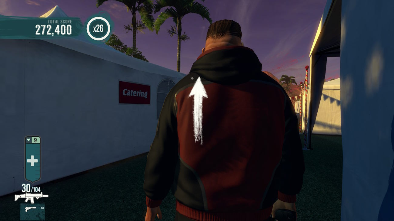 Построены они не на буквах, а на стрелках. И используются для того, чтобы подбирать патроны и броню, отбивать летящие в вас предметы, оглушать атакующих в ближнем бою противников, избегать препятствия и делать уникальные для каждого героя вещи. У Тони это необычный тип QTE – иногда экран закрывает его длинная челка, поправить которую можно нажатием стрелки «вверх». Многие QTE можно не делать, а отменять их стрельбой по летящим объектам и бегущим противникам.