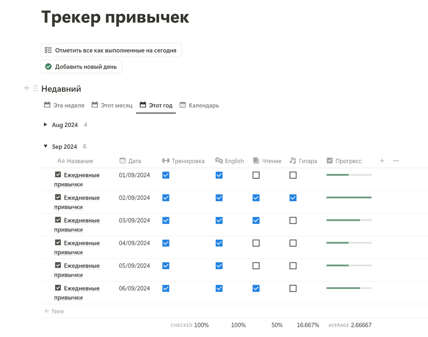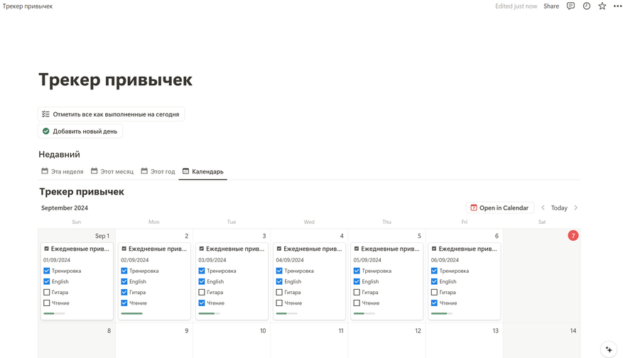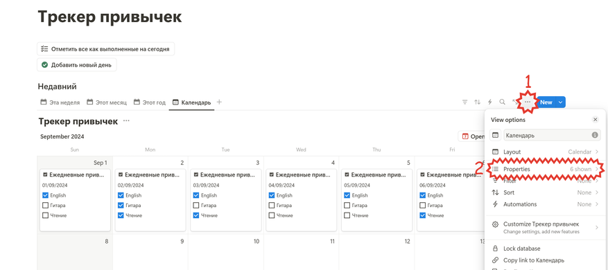 Трекер привычек в Notion - как отслеживать полезные привычки и приучить себя к тому, что нужно