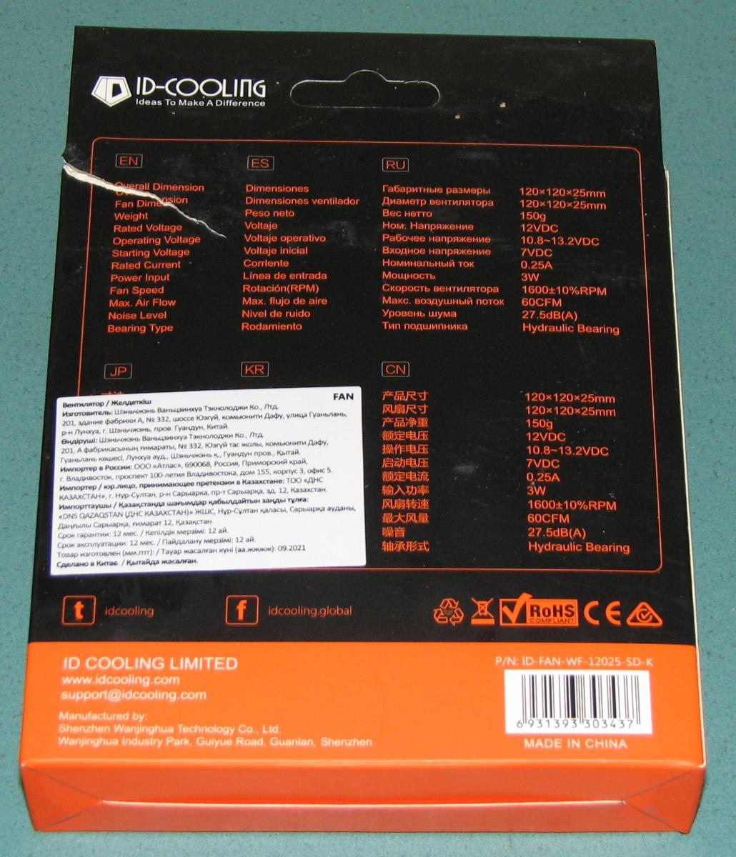 Упаковка немного пострадала, но все надписи вполне различимы, да и содержимое в полном порядке, так что я не стал настаивать на том чтобы мне поменяли товар, когда покупал вентилятор.