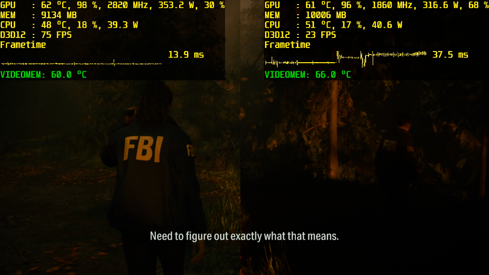 В Alan Wake 2 я увидел четкие 3 икса и без фреймгена, при том, что упора в озу на 3080ти нет, режим нативные 1080p длаа на максималках. В графике не вижу ничего особенного, системные требования считаю по-конски завышенными и если выставить нативное 4К (DLAA) на максималках да с генератором кадров, то 4090 выдает всего 40-45 фпс в лесу. При этом кадры с генерацией ощущаются как-то рвано по сравнению с нативными кадрами и на мой взгляд лучше настоящая 30ка, чем 45 с генерацией, но без нее фпс падает почти вдвое. Ратчет более тянет на некстген, но как игра неинтересная и расчитана больше на детскую аудиторию.