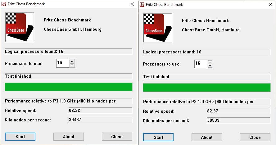 (Слева старая) На уровне погрешности, но все же слив на новой доске, возможно из-за чуть более медленной работы памяти.