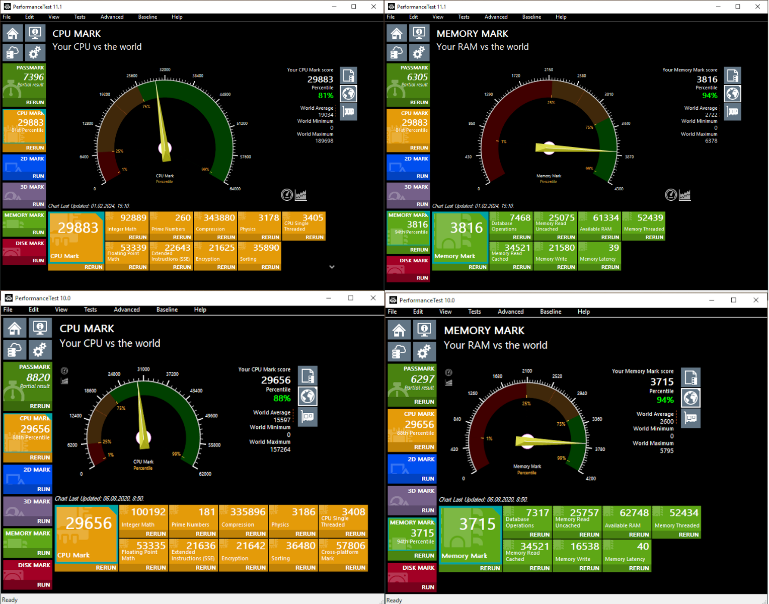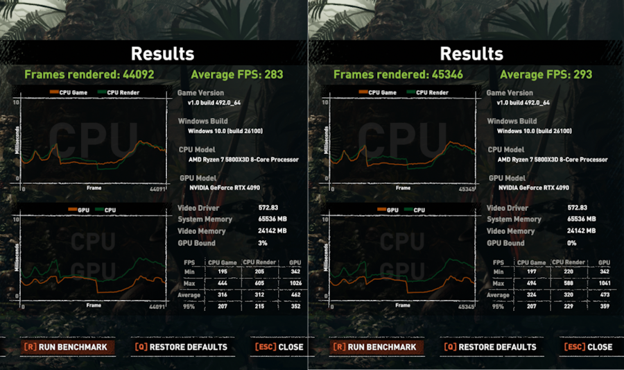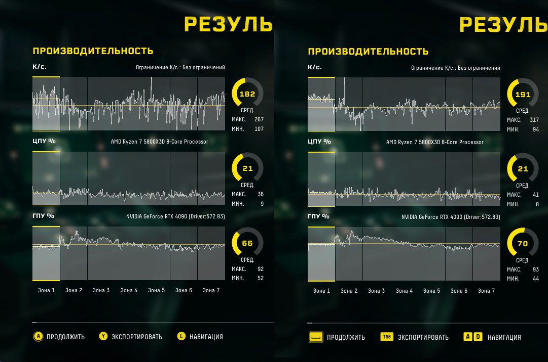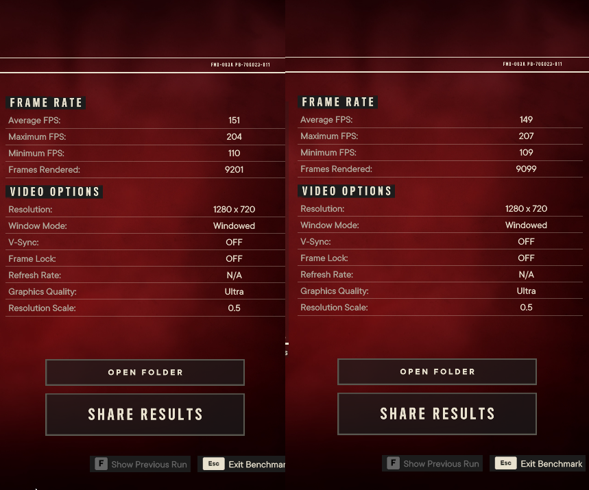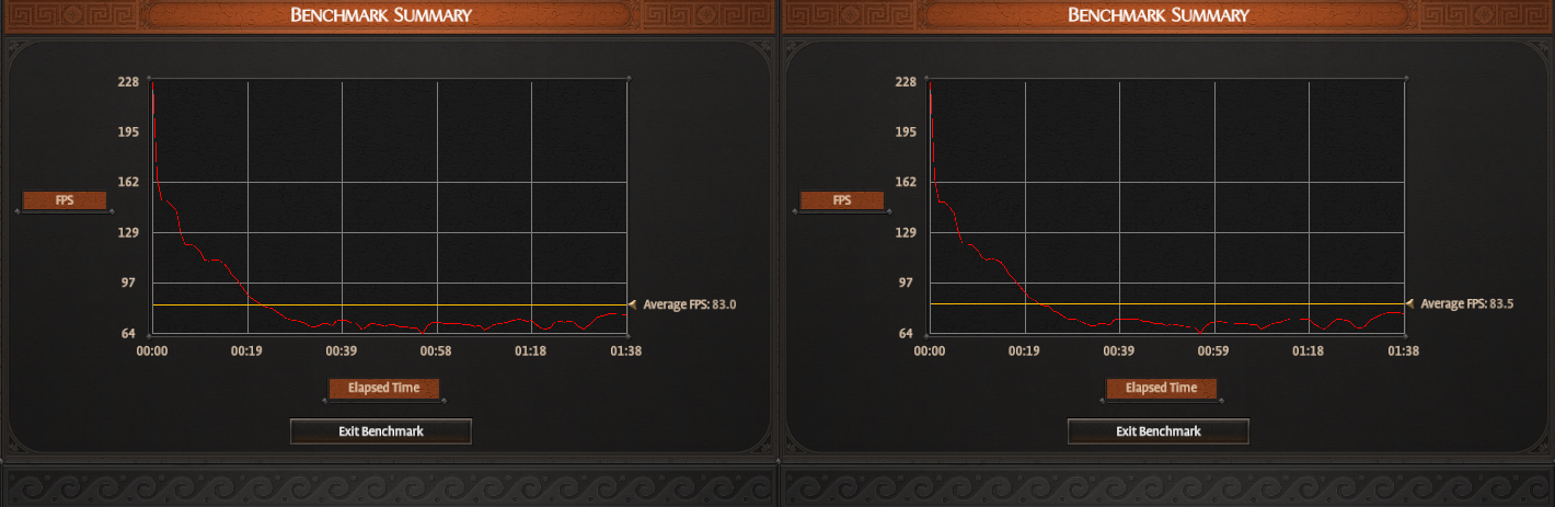 Сказал бы на уровне погрешности победа за новой доской по среднему и слив по минимальному, но если сравнить графики кадров слева и справа, то видно что на старой доске линия значительно более изломана, так что тут победа за новой доской по стабильности кадров.