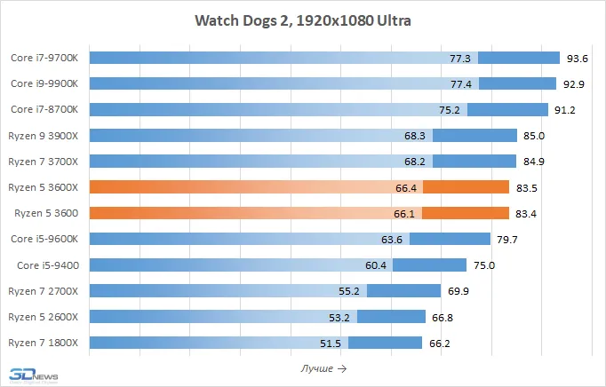 - Intel предлагает чуть более низкий средний fps, но при этом значительно более стабильный фреймтайм и меньшее количество «провалов».