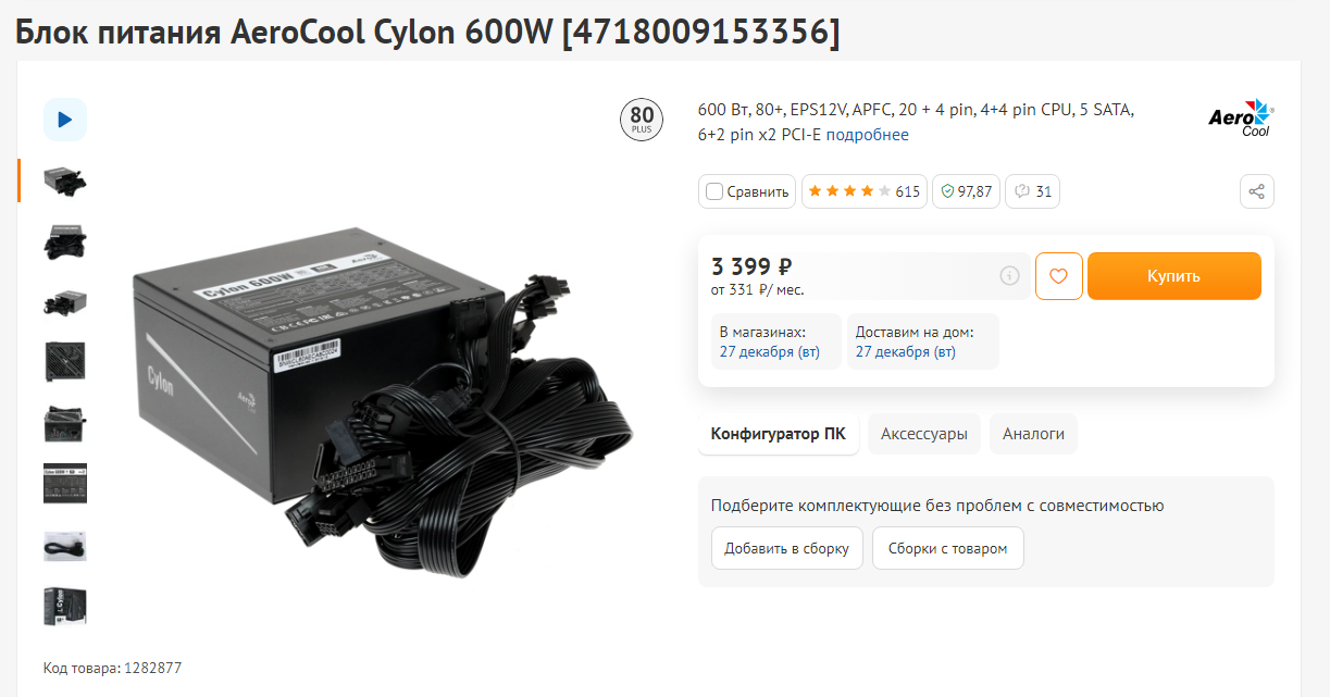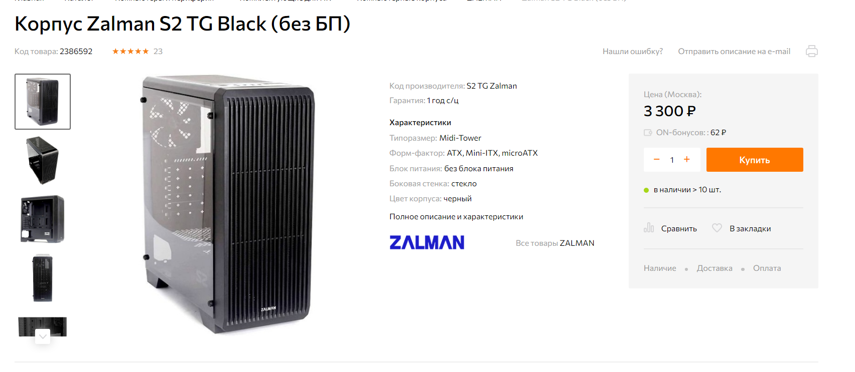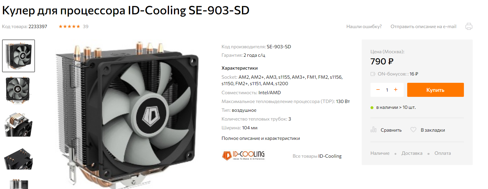 Охлаждение процессора. Т.к процессор у нас не из горячих, то можно подобрать хороший строгий кулер с хорошим теплоотводом. Покупать мы его будем в Online Trade т.к он там стоят в 2 дешевле, чем в ДНС.