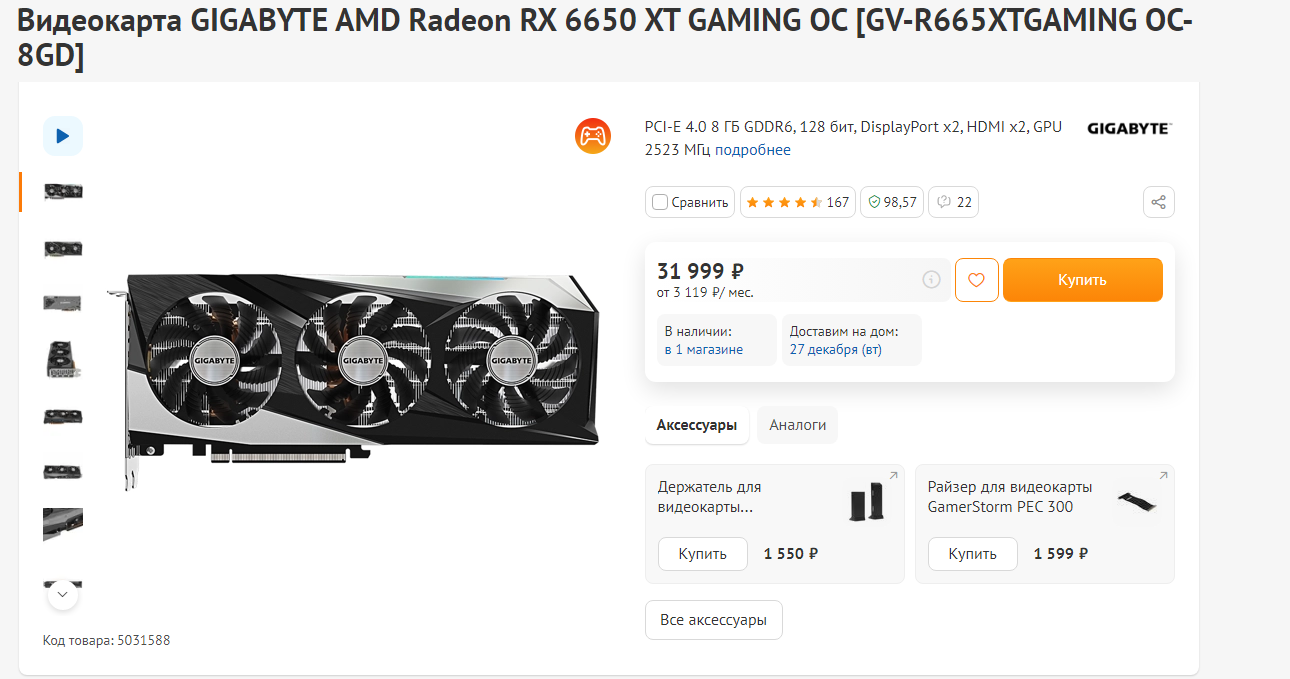 Видеокартой у нас будет rx 665o xt от производителя GIGABYTE