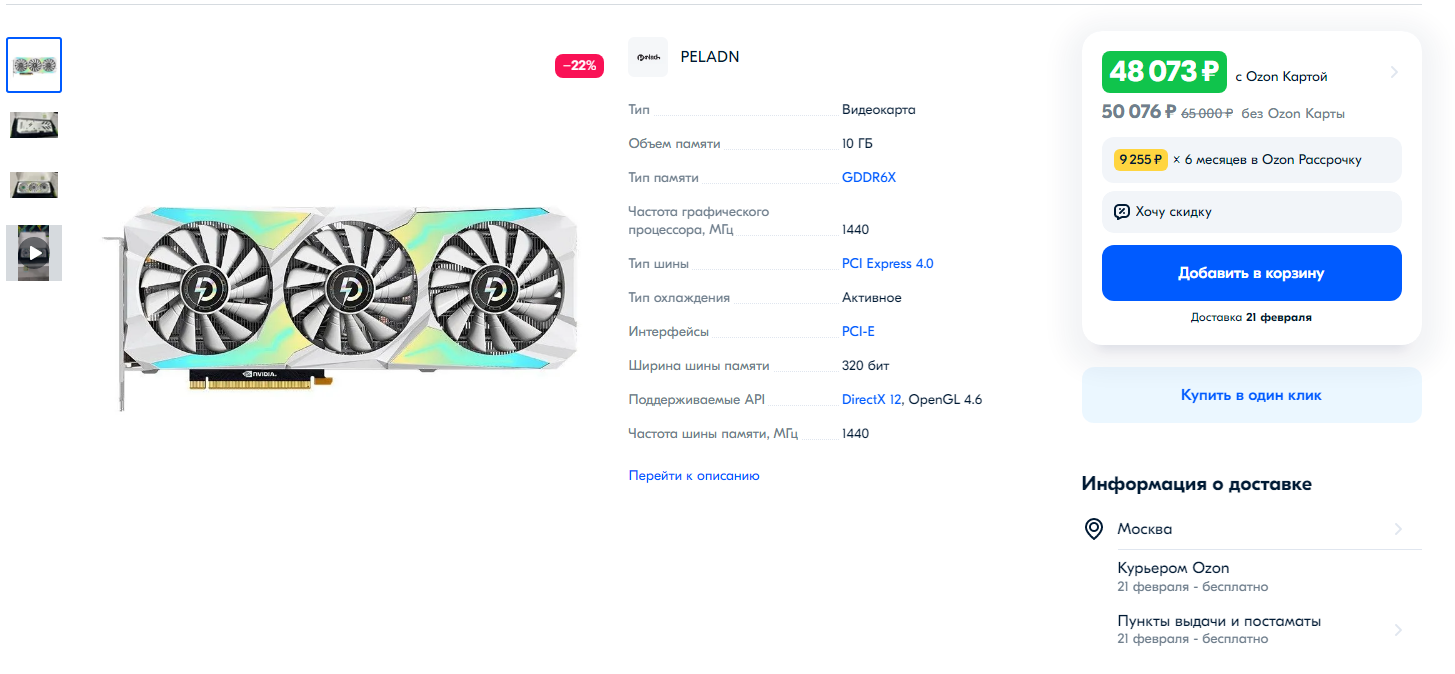 Либо взять что-то от "зелёных" 3080 за 48.000 рублей от компании Peladn.