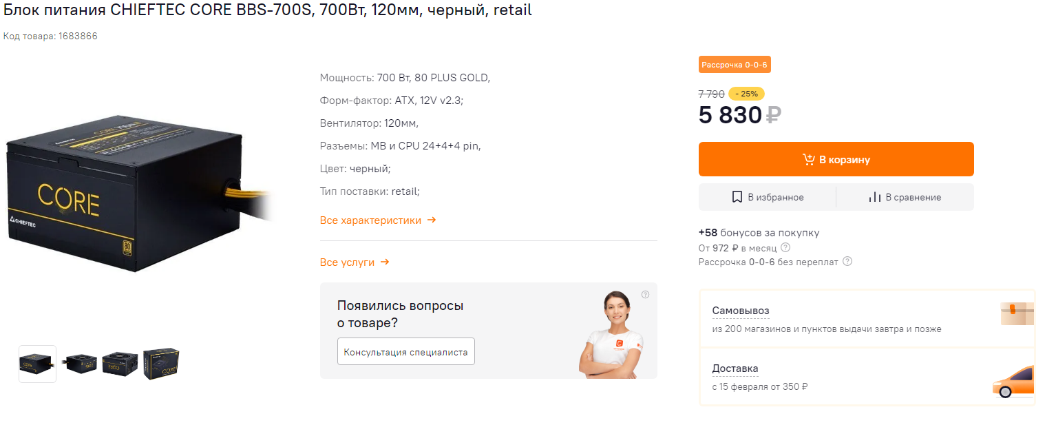 А за приятную цену - этот БП попадает в нашу сборку!