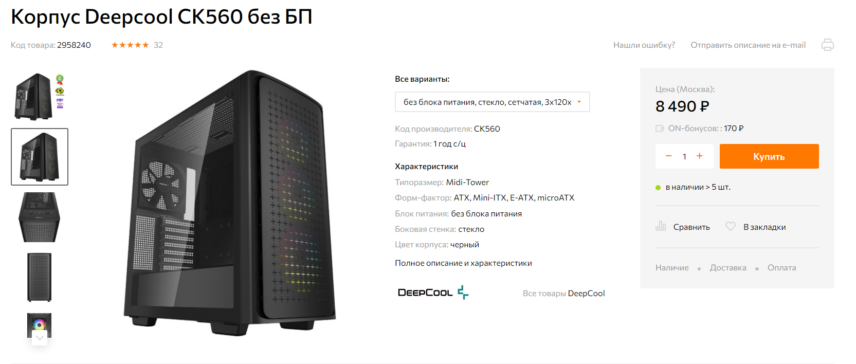 Корпус: Deepcool CK560
