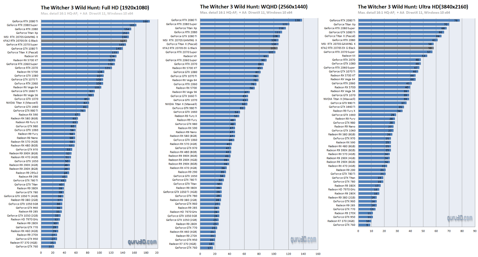 В The Witcher 3: Wild Hunt в 4К-разрешении RTX 2070 Super в исполнении KFA2 обеспечивает 58 кадр/сек с сильным отрывом опережая RX 5700 XT.
