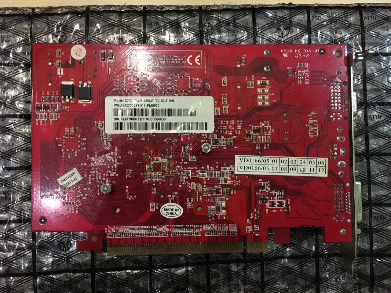 Представитель довольно неоднозначной X линейки фирмы ATi выпущенной в 2005 году, с одной стороны они были достаточно производительны и вполне неплохо выступали на фоне конкурентов от nVidia в лице 6xxx серии, с другой стороны X линейка состояла на самом деле из двух технологически разных чипов X700/800 и X300/600. И если первые поддерживали DirectX 9.0b, то вторые довольствовались лишь обычным DirectX 9.0. Ну и обе они уступали nVidia 6xxx которые умели в DirectX 9.0c, который надолго стал стандартом для игроделов и все эти ATi X превратились в тыкву - ибо игры на них просто перестали запускаться. Увы данный экземпляр кто-то ковырял и сколол кристал - так что карта мертва, пойдёт в коробку к донорам.