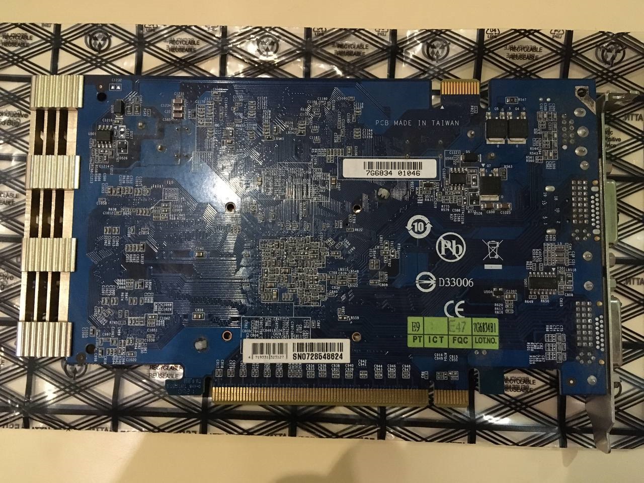 Зелёный сапфир... забавно, на этом собственно забавность этой карты заканчивается. И наступает суровая реальность, ибо хоть формально данная карта 2006 года и принадлежит к X1xxx линейке видеокарт ATi с поддержкой DirectX 9.0c, по факту же она основан на чипе RV370, т.е. это X300/600 умеющий только в обычный DirectX 9.0 и являющийся по факту Radeon 9600 переделанным под шину PCI-E... в общем трижды пережёванное то самое... Был потом ещё один X1050 уже на чипе R410 с поддержкой DirectX 9.0b, что опять же являлось обманом покупателей со стороны ATi. В общем колбасило тогда ATi уже не слабо и собственно такое поведение привело её к закономерному банкротству и поглощению со стороны AMD. А ведь каких-то пару лет назад она была лидером - увы "эффективные" менеджеры бывают не только в России. Карточка вполне живая, но что с ней делать я даже не знаю - наверное пойдёт на продажу по цене шаурмы.