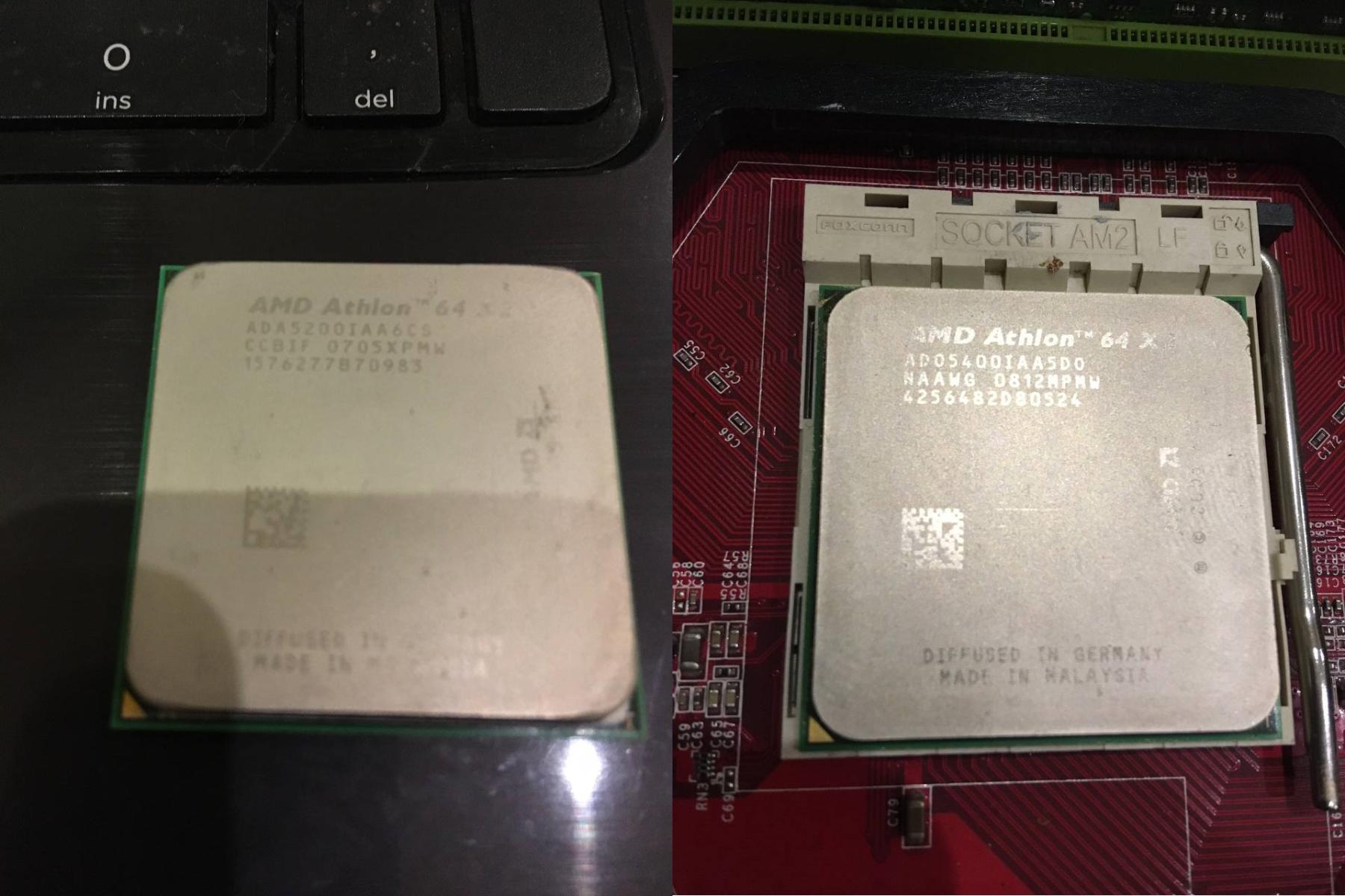 И начались приключения - сначала я сдёрнул радиатор с чипсета - заменил там термофольгу, на нормальную термопасту - это не помогло. Потом я сдёрнул кулер с проца и заменил термопасту - не помогло. Потом я нашёл ещё один процессор AMD Athlon 64 X2 5200+ который валялся у меня с незапамятных времён с гнутыми ногами, ноги я выправил, проц поставил - толку ноль.