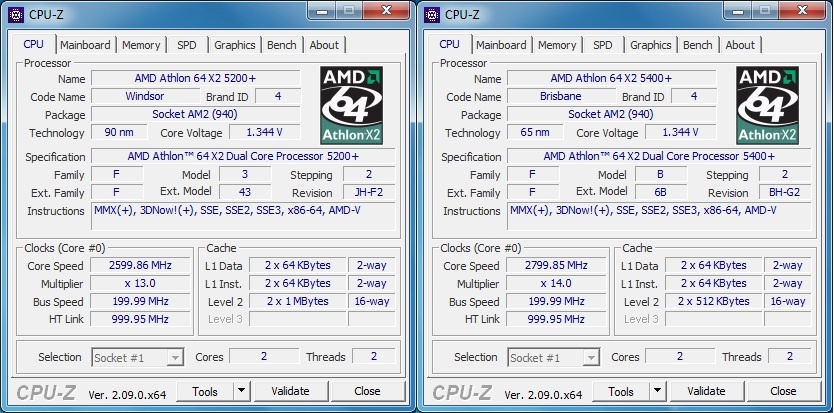 Как видим помимо различий по частоте и размеру L2 кэша, есть так же различие по используемому техпроцесс 90nm vs 65nm.