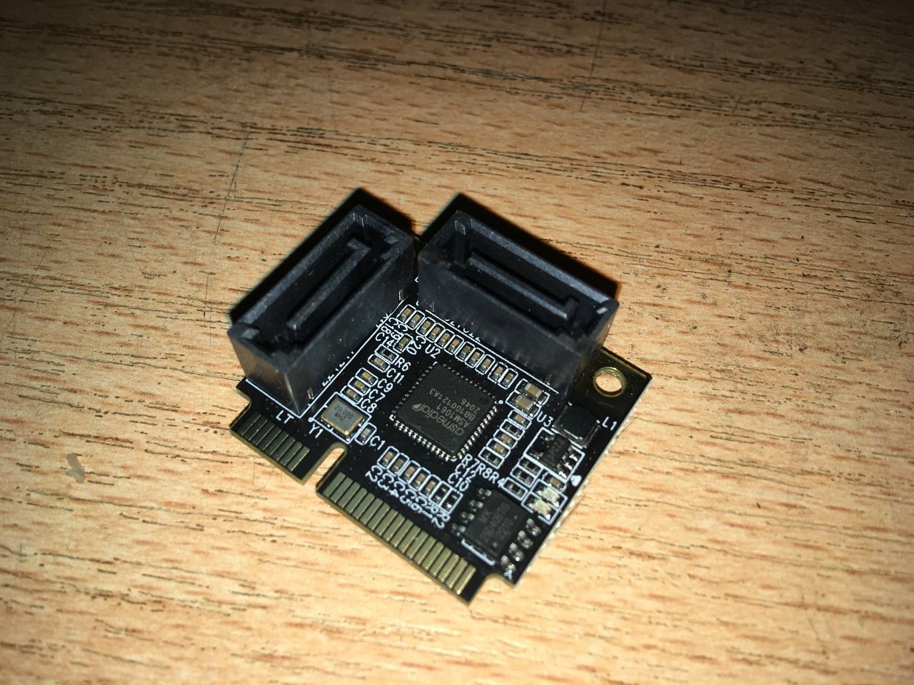 Привод владелец хотел сохранить, так что я пошёл искать SATA контроллер под mini PCI-E. И как я и ожидал у наших братьев китайцев и такое есть. Правда доставка затянулась почти на месяц. Называется сие изделие H11Z.