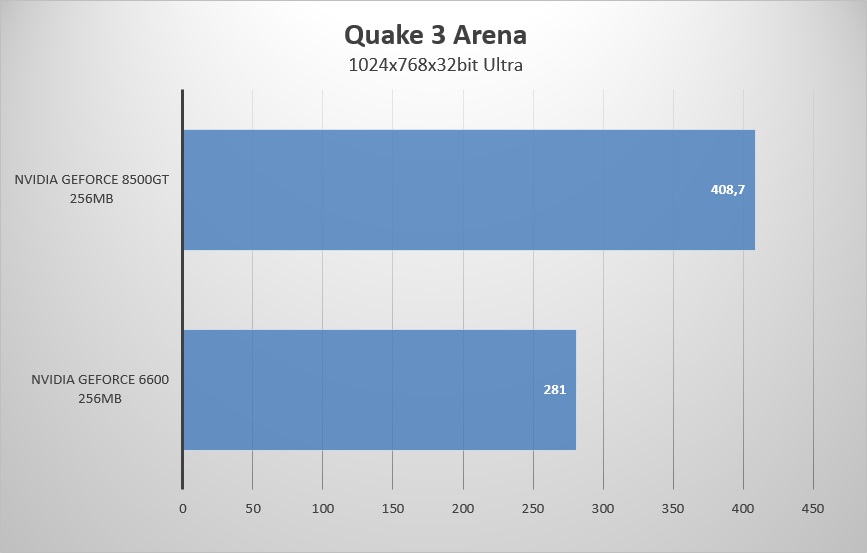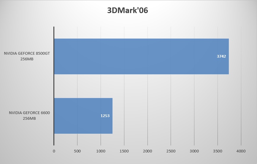 Ну и в DirectX 9.0c всё остаётся неизменным и трёхкратное преимущество остаётся за 8500GT.