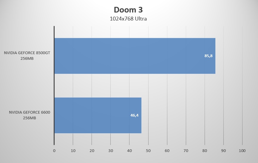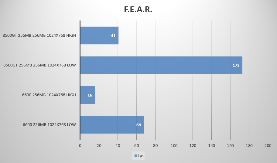 Что ж, данная игра подтверждает показания синтетических тестов и демонстрирует нам полуторакратное преимущество 8500GT над старушкой 6600.