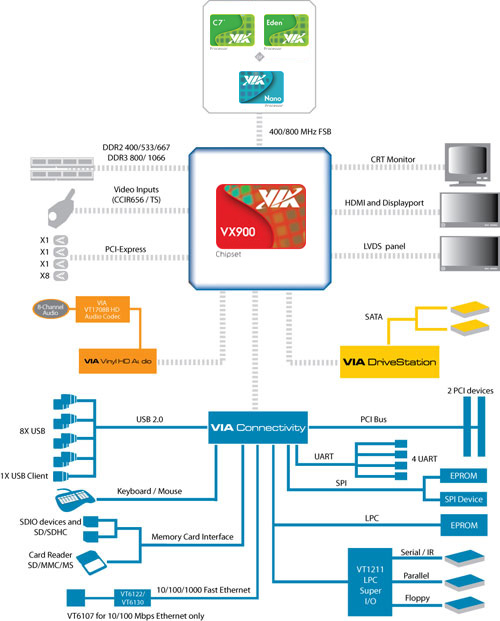 В основе платы лежит чипсет VIA VX900: