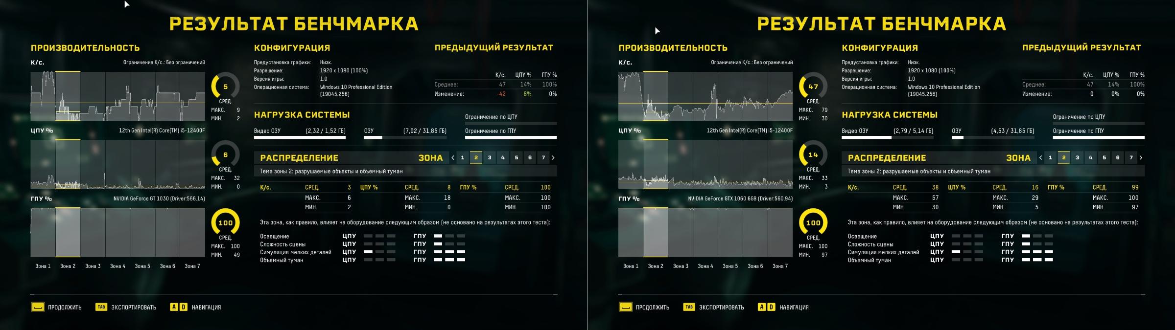 Мда... далее я предлагаю тестировать только на минимальных настройках графики в 1080p, ибо результаты по GTX 1060 у меня есть только под 1080p.