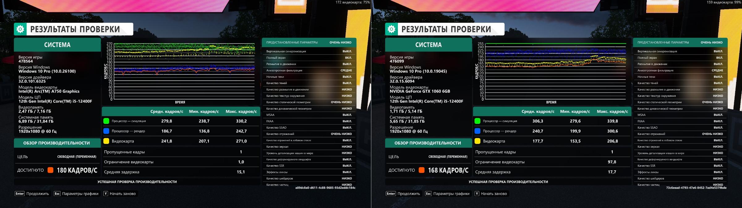 Данная игра использует DirectX 9.0c, и тут у нашей Intel Arc A750 8gb есть проблемы, ибо данный устаревший API она не поддерживает напрямую, а использует транслятор, что выливается в её 30% отставание от nVidia GeForce GTX 1060 6Gb. Впрочем, конкретно для данной игры - это не критично.