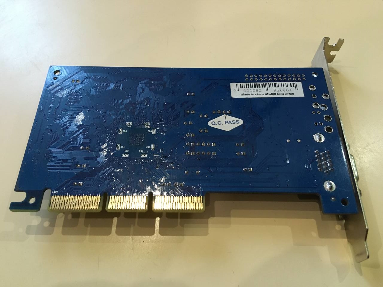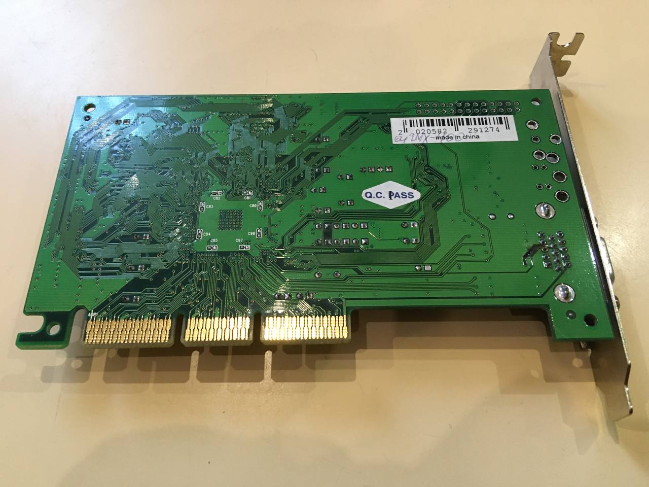 Вторая карта в целом практически идентична, но шина тут 64bit, а памяти аж 64Mb. Ну и как видите TV-out и его развязка - не распаяны. Ушлые китайцы, мистер Хуанг это не про вас, наловчились делать один дизайн и для карт с 64bit шиной, и для карт 128bit - сделав разводку на плате под оба варианта разом. Что при массовом производстве позволяло существенно экономить. Качество этой платы конечно сомнительно и о каком-то качестве изображения тут сами понимаете говорить смысла не имеет - показывает и на том спасибо.