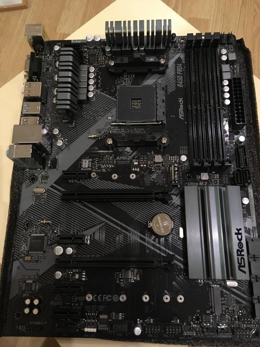 Материнской платы в пакете не было, и она приобреталась новая в магазине. Критерии подбора были простые - полноценная ATX по вменяемой цене. Платы на чипсете A520 нам не подходили, по причине отсутствия у них поддержки процессоров Ryzen 2-го поколения, так что выбор был остановлен на данной плате с чипсетом B450. Особо мне о ней сказать нечего - плата как плата, всё что нужно на ней есть, и даже есть какой-никакой запас на апгрейд.