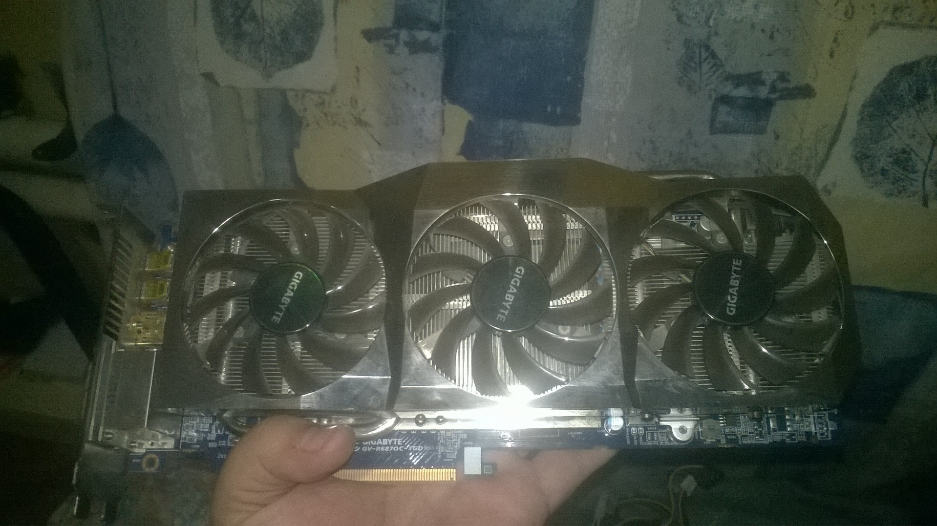 Денег у меня не было, зато были знакомые в местном компьютерном сервисе и доступ к их помойке и в помойке той отыскалась целая HD6870 аж на целый 1Gb да ещё с 3мя пропеллерами и заводским разгоном. С видеокартой было всё в порядке, акромя порта DVI при установке переходника на VGA экран почему то заливало красным собственно этот дефект был из коробки, видеокарта долго и не раз ездила по маршруту продаван-дистрибьютор и в итоге оказалась в куче подобного же барахла которая ждала утилизации в сервисе по причине истечения гарантийного срока.