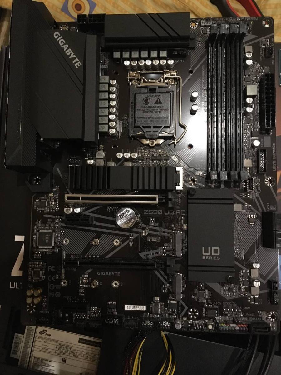 Я уже имел с ним дело и несмотря на его горячий нрав относительно 10-го поколения разница в цене у него была не существенная, а какие-никакие плюшки очевидны - PCI-E4.0 и дополнительный слот под M2, висящий на процессорных линиях PCI-E. Учитывая, что материнскую плату мы будем брать на Z590, при выборе материнской платы основными критериями были - наличие на борту WiFi модуля, а также нормальный ATX размер, а не какой-то там обрубок. Собственно, на момент покупки самый доступный вариант - это Gigabyte Z590 UD AC, ценою в 9500р.