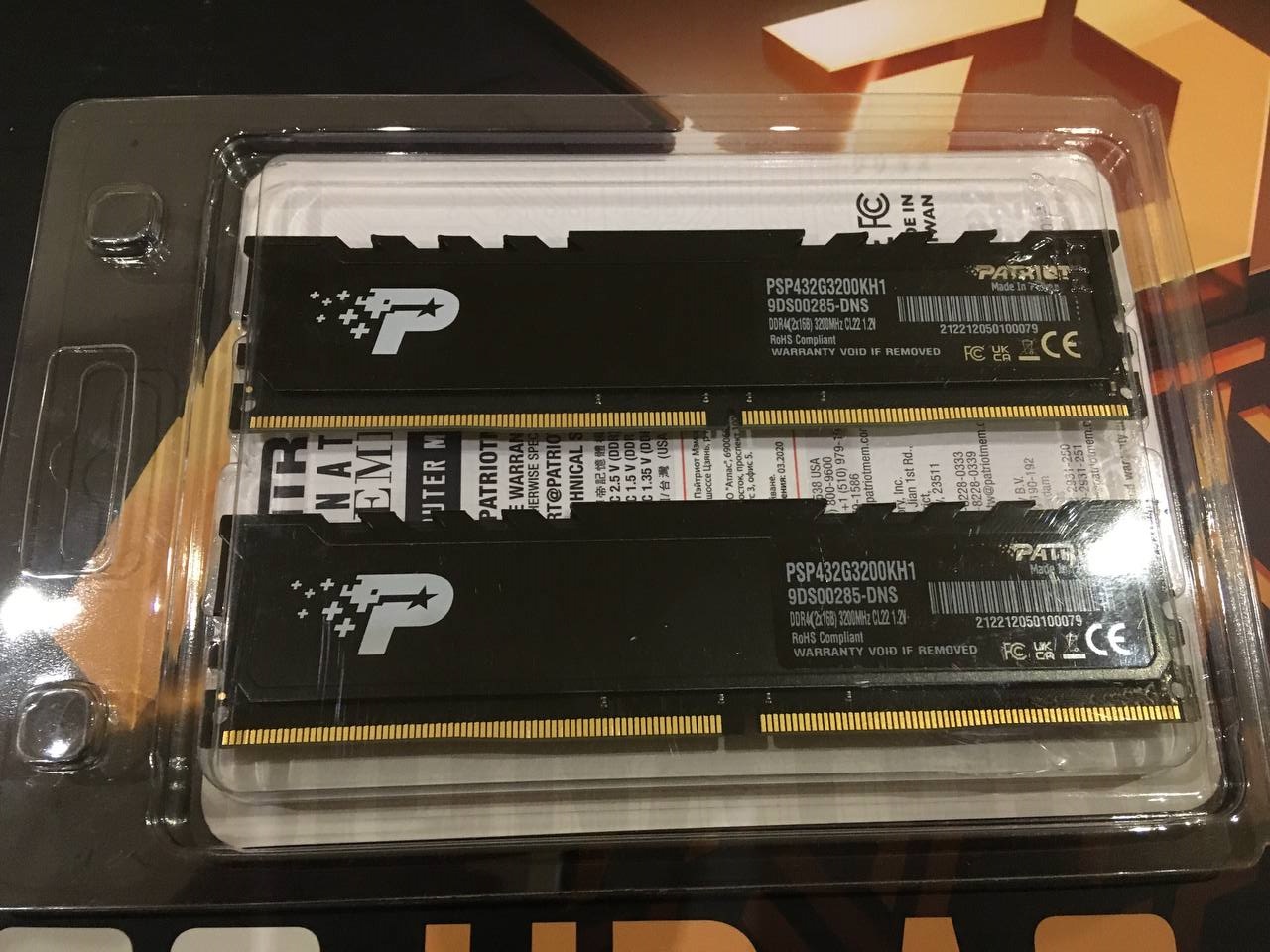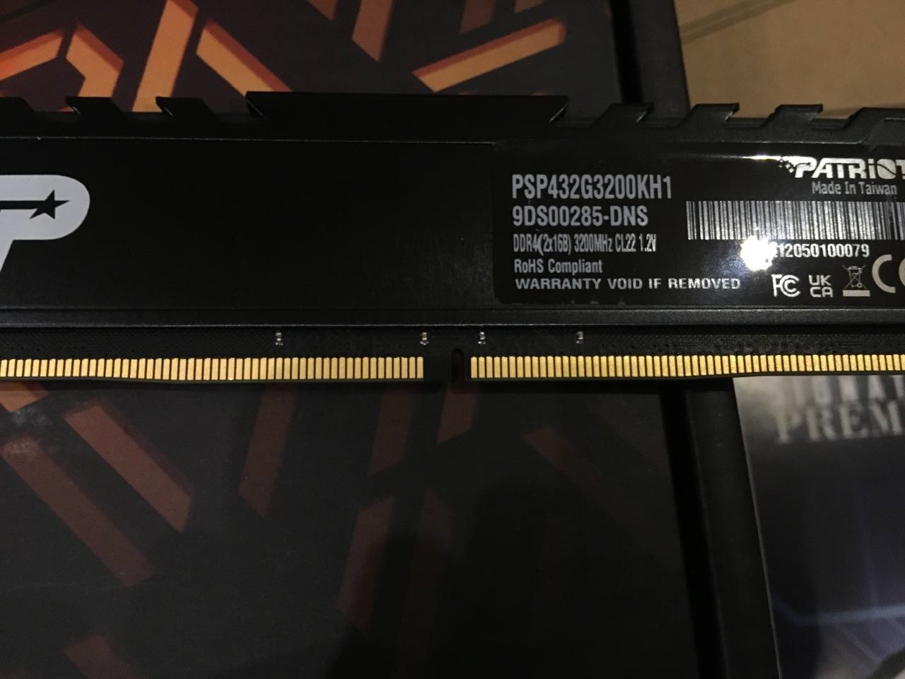 С оперативкой было уже не всё так просто, выбор то в магазинах приличный, а вот качество этих всех модулей сомнительное. Ни для кого не секрет, а для тех кому секрет мы его сейчас раскроем - модули памяти подбираются довольно просто - для начала было решено брать сразу 32Gb, чтоб в ближайшие лет 5 к этому вопросу не возвращаться, частота естественно 3200 максимальная для стандарта DDR4 и главное рабочее напряжение 1.2в. Проставив все эти галочки на сайте магазина вдруг обнаруживается, что выбрать-то надо всего-то моделей из 10-12, а весь шлак сам собой отсеивается. Сначала я хотел взять какие-то обычные "зелёненькие" модули то ли Crucial, то ли Samsung, но они пропали из продажи. В итоге был взят комплект из 2х модулей по 16Gb - прошу любить и жаловать Patriot Signature Line Premium PSP432G3200KH1 2х16Gb. Цена на момент покупки 6500р.