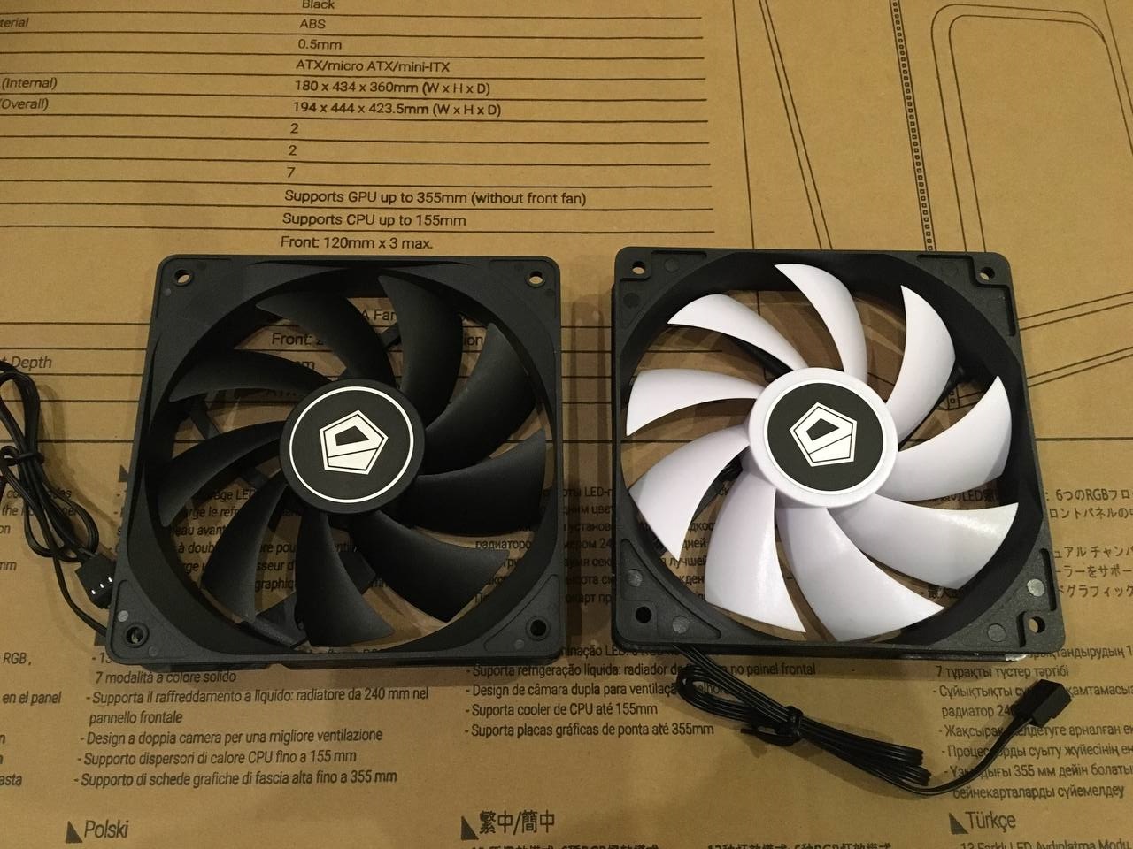 Предвидя проблемы с охлаждением, в корпус было запихано максимальное для него количество вентиляторов, а именно 6шт 120х120 ID-COOLING двух видов FL-12025 и FL-12025K 500р за шт.