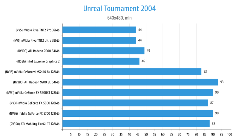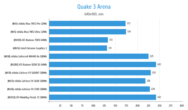 Все GeForce отличились заметной на глаз оптимизацией производительности в угоду качества картинки, а вот Radeon 7000 и i865G удивили тем, что на них игра вообще запускается.