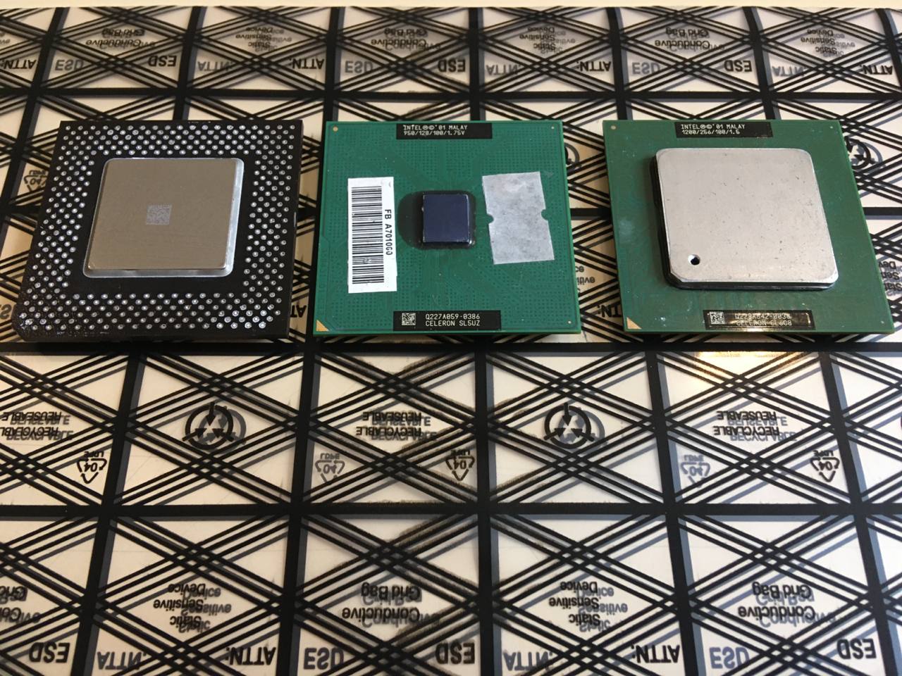 Собственно, 3 поколения процессоров под Socket 370, слева на право Mendocino, Coppermine и Tualatin в исполнениях PPGA, FCPGA и FCPGA2 соответственно.