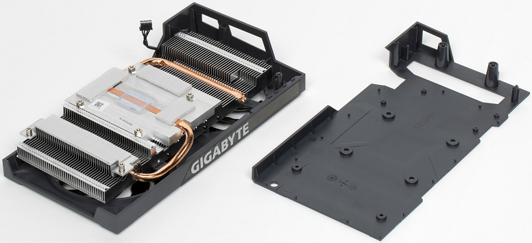 Второе исполнение от Gigabyte GeForce RTX 3050 Gaming OC и вовсе выглядит монстром, походя на более «жирные» системы охлаждения от старших 3060\3070 и даже 3080. Три вентилятора, крутой бекплейт, подсветка логотипа. В общем мечта мамкиного геймера. Но в этой видеокарте как раз имеется самый большой обман ожиданий.