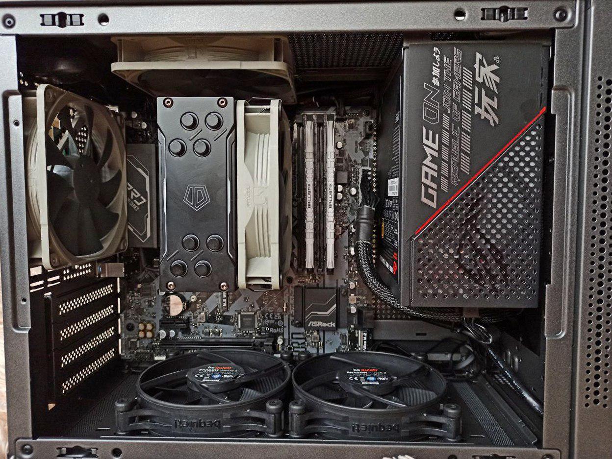 - Охлаждение: 2xbe quiet! Shadow Wings 2 120mm BL084 снизу, 1xNoctua NA-FK1 redux сзади, 1xNoctua NA-FK1 redux сверху, 1xNoctua NF-P12 Redux-1300 PWM на кулере, заменен вместо штатного 224XT Basic.