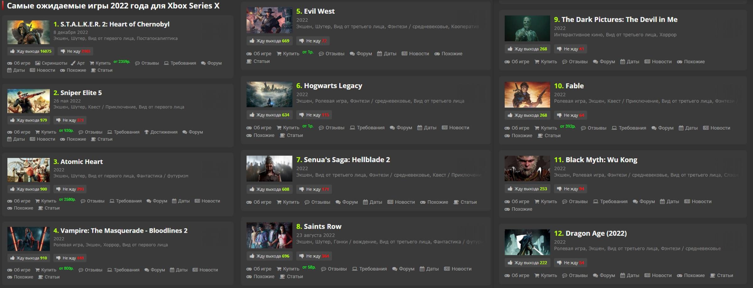 Да, это были планы выпуска на 2021 год. Идет уже пятый месяц 2022 года. Где игры спустя почти 1.5 года после выхода консоли? Непонятно. Возьмем первый попавшийся сайт с ожиданиями по выходу игр на 2022 год. Можно посмотреть любые аггрегаторы, но результаты будут схожими: