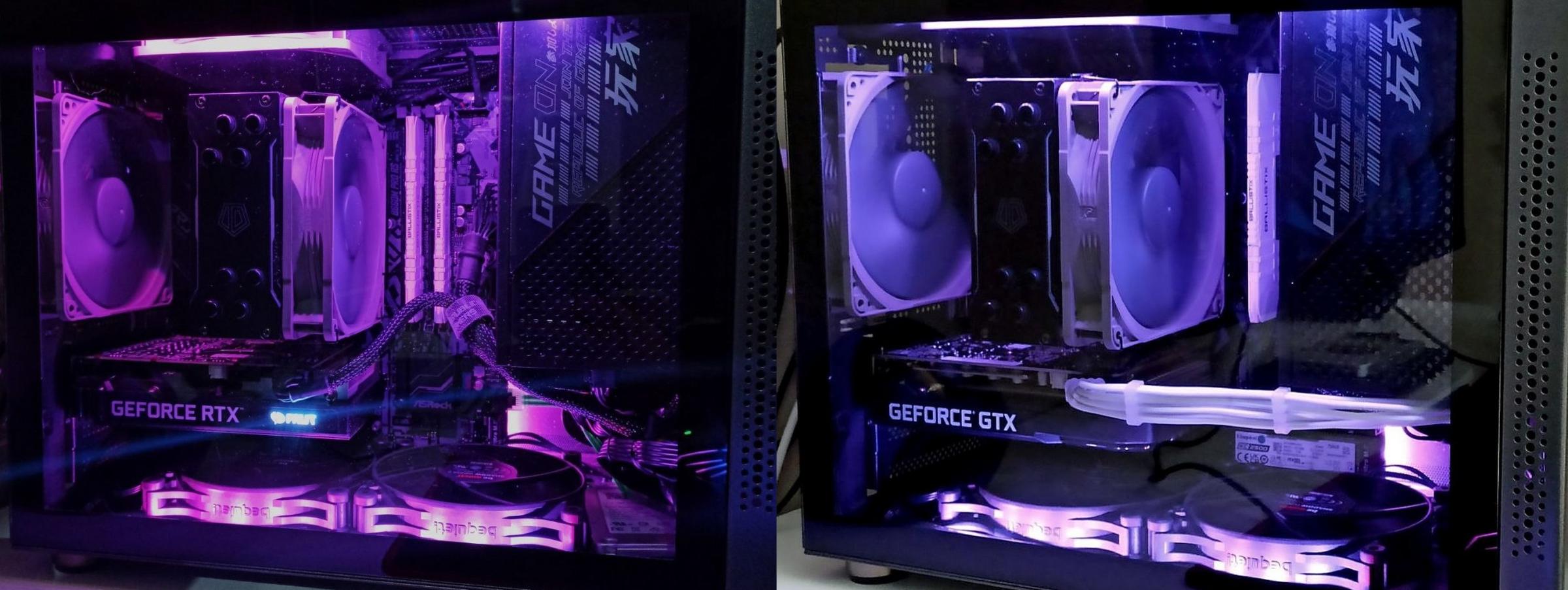 Система охлаждения у 1660Ti всё-таки более продумана, несмотря на меньшее количество ребер радиатора и их площади. Охлаждаются и все мосфеты, в том числе памяти и даже дроссели. На RTX3050 охлаждение мосфетов памяти - лишь 2 отростка, из которых используется только 1 (и стоит это всё дело с горячими чипами памяти, что не очень хорошо), так как на GTX двухфазная подсистема питания памяти. При лобовом сравнении карты показывают практически одинаковые температуры в одном и том же корпусе. Эти системы охлажения используются в старших братьях карт - RTX3060 и RTX2060 соответственно.