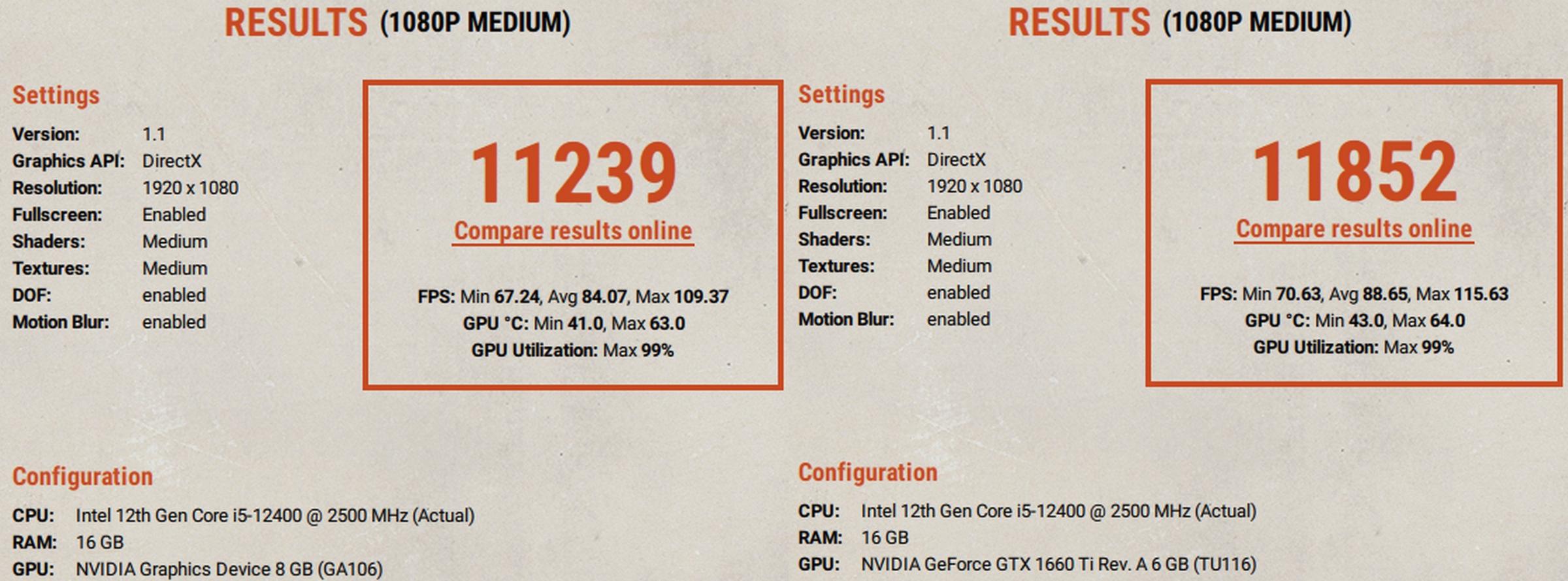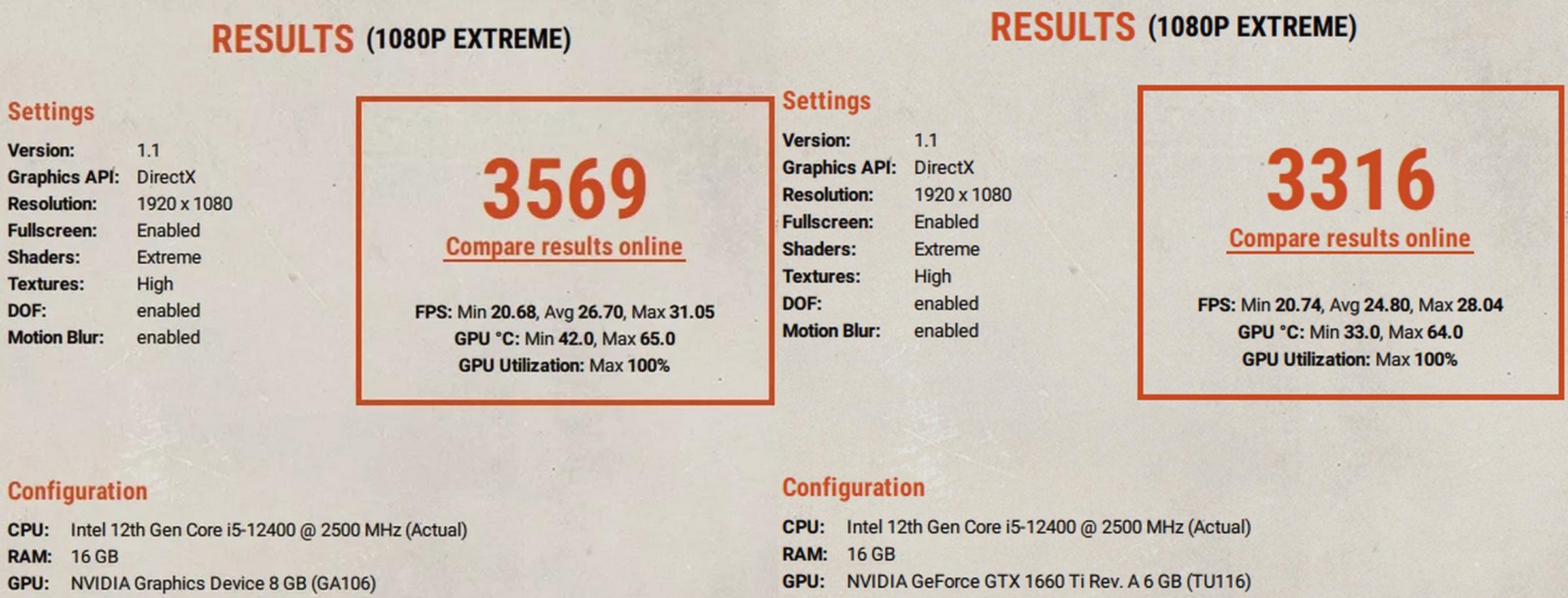 На экстрим пресете RTX3050 всё-таки берет верх. На среднем пресете опять странная ситуация.