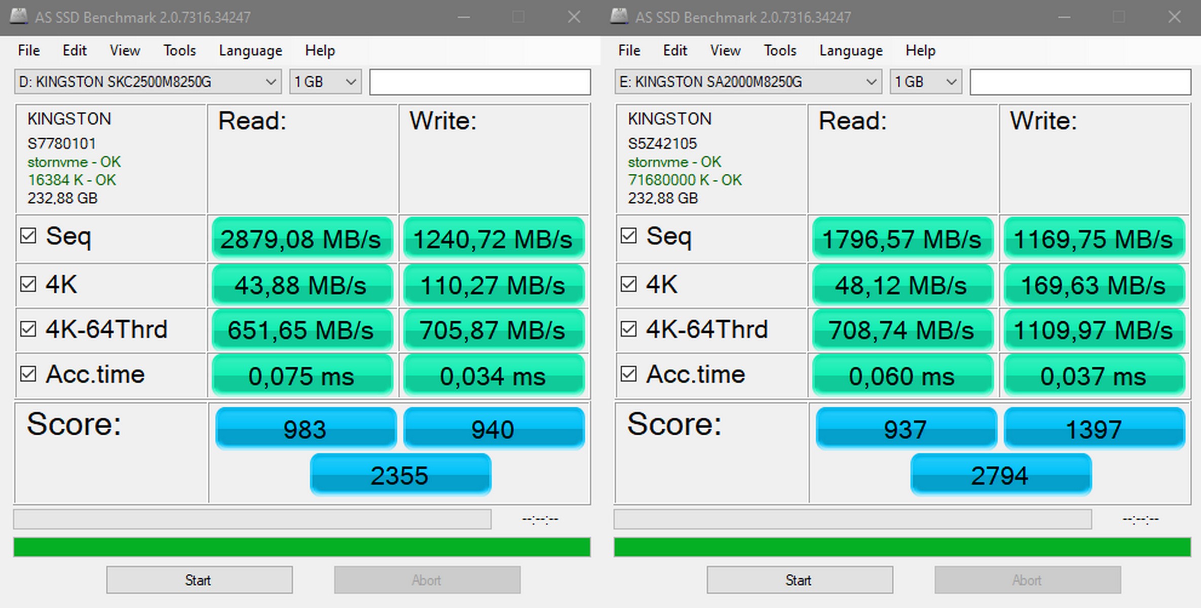 Сравнение будем проводить с одной из популярных ранее моделей - Kingston A2000 такого же объема.