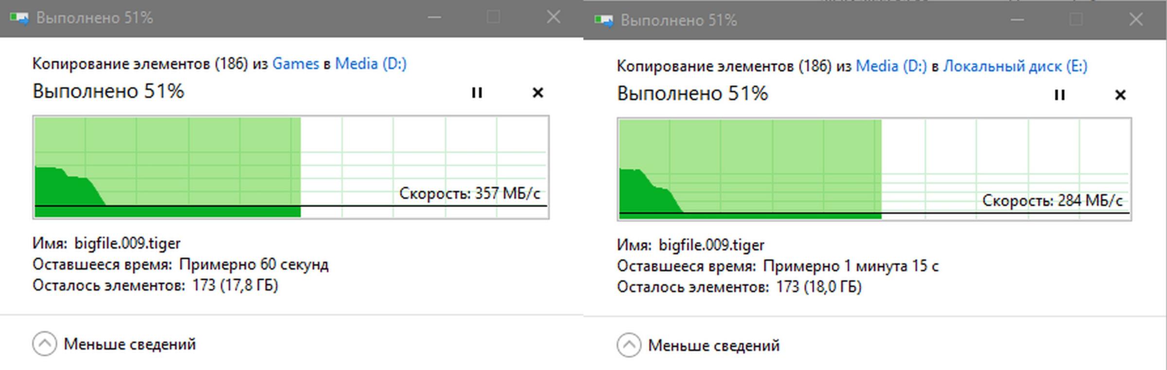 Копирование файла размером в 37Gb на накопитель, уже заполненный более, чем на 60%:
