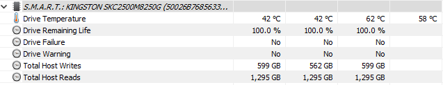 Целесообразность использования на KC2500 под вопросом, обычному пользователю особо не погонять большие объемы на 250Gb накопителе, да и без радиатора температуры вменяемые, всего до 62 градусов. И это в маленьком корпусе без дополнительного обдува на накопитель.